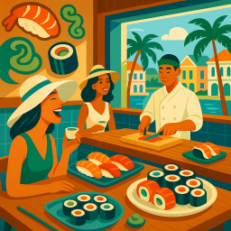 A hidden gem The atmosphere is awesome and the food exceptional. The staff friendly and service excellent. Quite a change from most in the region Would definitely recommend. I had the hamachi ponzu and the double trouble roll that was shrimp and lob