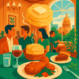 * Jetzt kann Peter das Abendessen mit seinen Freunden im Olamaie Austin genießen!