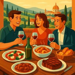 * Jetzt kann Peter das Abendessen mit seinen Freunden im Podere 39 Firenze genießen!