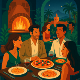 Nehmen wir an, Peter hat einen großartigen Morgen und beschließt, seine drei Freunde am selben Tag um 18 Uhr ins Portofino Restaurant Marrakech einzuladen.