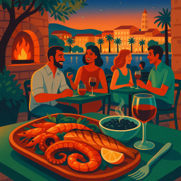 * Jetzt kann Peter das Abendessen mit seinen Freunden im Restaurant Krug Split genießen!