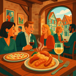 * Jetzt kann Peter das Abendessen mit seinen Freunden im Restaurant le Zinc Colmar genießen!