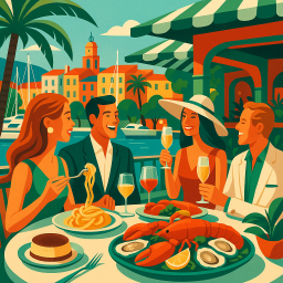 * Jetzt kann Peter das Abendessen mit seinen Freunden im Restaurant Noto Saint-Tropez genießen!