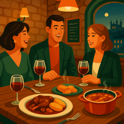 * Jetzt kann Peter das Abendessen mit seinen Freunden im Restaurant Rustique - Lyon genießen!