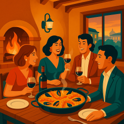 * Jetzt kann Peter das Abendessen mit seinen Freunden im Restaurante Casa Benigna Madrid genießen!