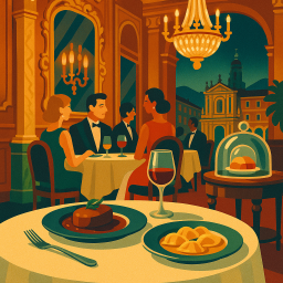 * Jetzt kann Peter das Abendessen mit seinen Freunden im Ristorante Del Cambio Torino genießen!