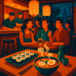 * Jetzt kann Peter das Abendessen mit seinen Freunden im Roji Cincinnati genießen!