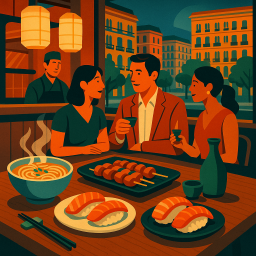 * Jetzt kann Peter das Abendessen mit seinen Freunden im sato i tanaka Barcelona genießen!