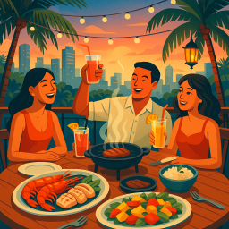 * Jetzt kann Peter das Abendessen mit seinen Freunden im Sea Breeze Resort And Restaurant Taguig genießen!
