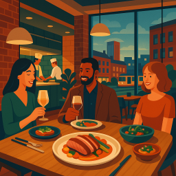 * DistinguishedTree58 nutzt nun seine Kontakte im Skof a restaurant by Tom Barnes Manchester, um den Tisch zu sichern.