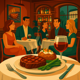 A traditional steakhouse setting with a full bar and a good wine list. Very good service from friendly waitstaff. Try the crab Cake Salad from the Lunch Menu, the Smoked Salmon or the Lamb Chops.