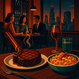 * Jetzt kann Peter das Abendessen mit seinen Freunden im Steak 48 Chicago genießen!