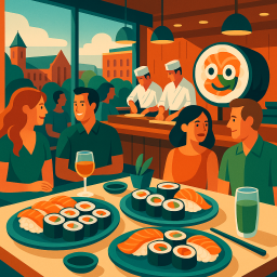 * Jetzt kann Peter das Abendessen mit seinen Freunden im Sushi Nine Raleigh genießen!