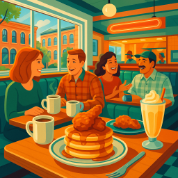 * Jetzt kann Peter das Abendessen mit seinen Freunden im Sweet Diner Milwaukee genießen!