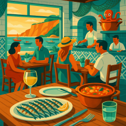 * Jetzt kann Peter das Abendessen mit seinen Freunden im Taberna d'Adelia Nazaré genießen!