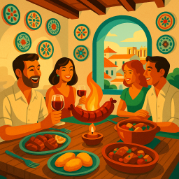 * Jetzt kann Peter das Abendessen mit seinen Freunden im Taberna Típica Quarta-feira Évora genießen!