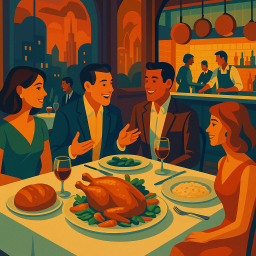 * Jetzt kann Peter das Abendessen mit seinen Freunden im TAILLEUR RESTAURANT Kansas City genießen!