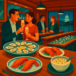 * Jetzt kann Peter das Abendessen mit seinen Freunden im Tempest Oyster Bar Madison genießen!
