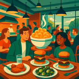* Jetzt kann Peter das Abendessen mit seinen Freunden im The Food Market Columbia genießen!