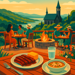 * Jetzt kann Peter das Abendessen mit seinen Freunden im Top of the Rock Ozarks Heritage Preserve genießen!