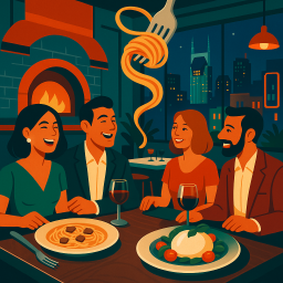 * Jetzt kann Peter das Abendessen mit seinen Freunden im V Modern Italian Nashville genießen!