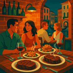 * Jetzt kann Peter das Abendessen mit seinen Freunden im Vini Da Arturo Venezia genießen!