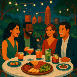 * Jetzt kann Peter das Abendessen mit seinen Freunden im Willow Bar Atlanta genießen!